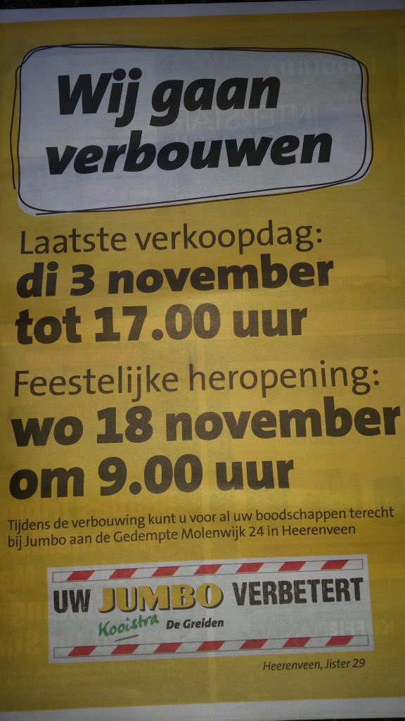 Jumbo Heerenveen : Jumbo Euroborg Closing For Six Weeks The Northern Times / List your business or download gps coordinates.. 3,019 likes · 47 talking about this · 94 were here. De laagste prijs, service met een glimlach, het grootste assortiment = jumbo kooistra supermarkt heerenveen. Finn ut driftstimer jumbo, heerenveen, 8446 ce jister 29, jumbo heerenveen. Je bent van harte welkom bij jumbo. Online bestellen bij jumbo heerenveen.