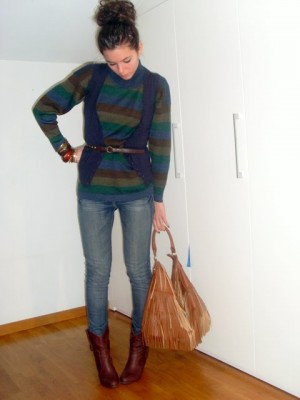 Brown leather carefully hand woven, 1,20 / 3 cm wide with solid brass buckle.